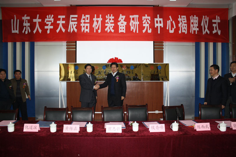 2012年12月26日上午,濟(jì)南天辰鋁機(jī)制造有限公司與山東大學(xué)工程機(jī)械學(xué)院產(chǎn)學(xué)研合作揭牌儀式在濟(jì)南天辰電教室隆重舉行。